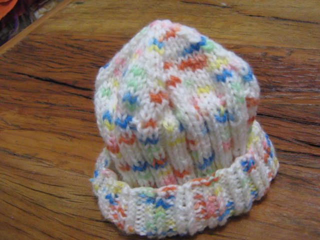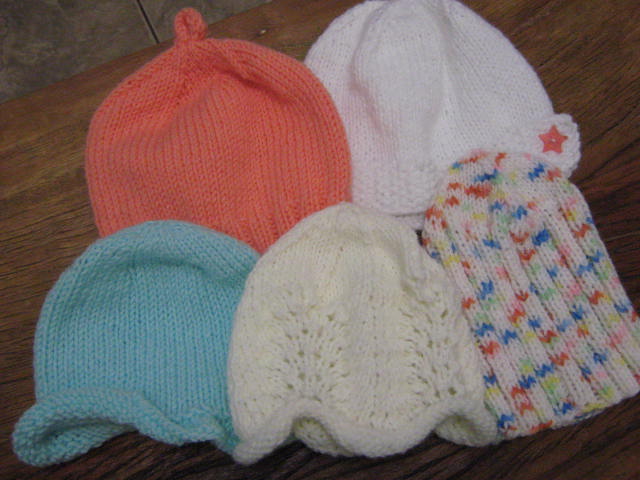 Como o enxoval dela estava completo - afinal ela tem duas tias super tricoteiras, fiz gorrinhos que era o que lhe faltava.
