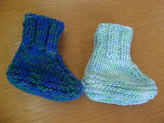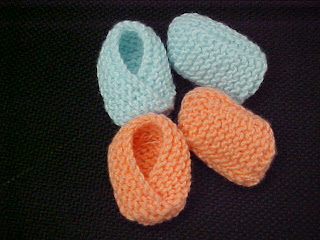 Fiz mais um par de sapatinhos pro mesmo casal... rápido, fácil e muito confortável. A receita é a mesma da postagem anterior no sapatinho claro e no mais escuro são 3pj, 1m, 3pj no direito e sem diminuições no avesso. No final dá tudo no mesmo.